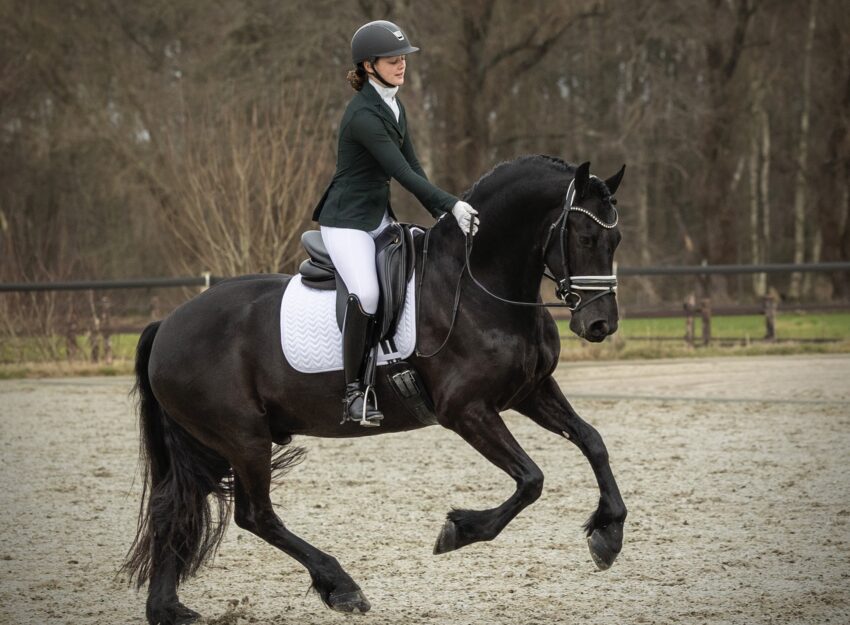 Toen ik te groot werd voor mijn pony, begon ik met het rijden van onze paarden die uit de opfok kwamen en vanaf toen ben ik ook verliefd geworden op het Friese ras.